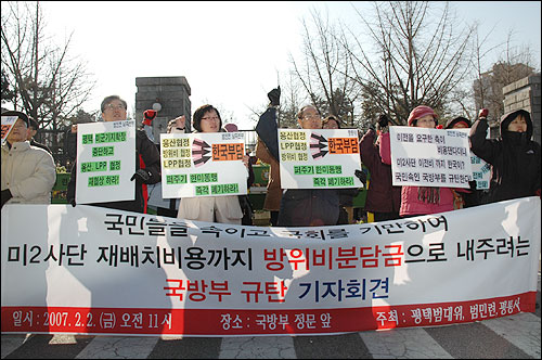 2¿ù 2ÀÏ(±Ý) ¿ÀÀü 11½Ã, ±¹¹æºÎ ¾Õ¿¡¼ ÆòÅë»ç¿Í ¹ü¹Î·Ã³²Ãøº»ºÎ, ÆòÅùü´ëÀ§´Â °øµ¿À¸·Î ±âÀÚȸ°ßÀ» ¿°í Áö³ 1¿ù 18ÀÏ ¹öÀ£ º§ ÁÖÇѹ̱º »ç·É°üÀÌ "¹æÀ§ºñºÐ´ã±ÝÀÇ 50%¸¦ ¹Ì±º±âÁö ÀÌÀüºñ¿ëÀ¸·Î »ç¿ëÇϰڴÙ"°í ÇÑ ¹ß¾ðÀ» ÀçÈ®ÀÎÇϰí, ÀÌ´Â ±× µ¿¾È ¹ÌÃøÀÌ ¹æÀ§ºñºÐ´ã±ÝÀ» ±âÁö ÀÌÀüºñ¿ëÀ¸·Î »ç¿ëÇÒ °ÍÀ̶ó´Â ÀÇȤÀÌ »ç½Ç·Î È®ÀÎµÈ °ÍÀ̸ç LPPÇùÁ¤¿¡ ´ëÇÑ ¸í¹éÇÑ À§¹ÝÀ̶ó°í ¹àÇû½À´Ï´Ù.