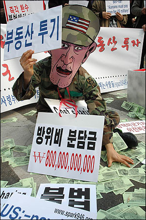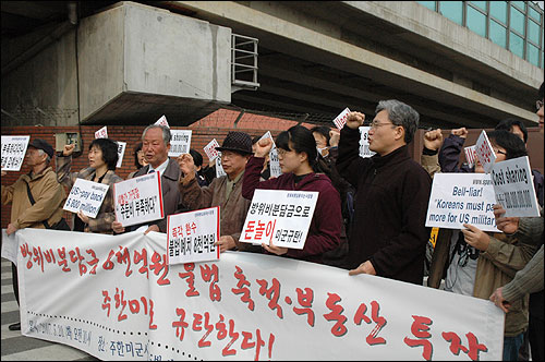 ¹Ú¼®ºÐ ÆÀÀåÀº ¡®ÆòÅë»ç´Â ±×µ¿¾È ¹æÀ§ºñºÐ´ã±ÝÀÇ ºÎ´ç¼ºÀ» °è¼ÓÇØ¼ ÁöÀûÇßÁö¸¸ º§ »ç·É°üÀº ¹æÀ§ºñºÐ´ã±ÝÀÌ ºÎÁ·Çؼ ½Ã¼³ºñ, Çѱ¹ÀÎ °í¿ë¿øÀÇ ¼ö¸¦ ÁÙ¿©¾ß ÇÑ´Ù°í Çù¹ÚÇß´Ù¡¯°í ¸»Çß´Ù. ÀÌ¿¡ ´ëÇØ ¡®¿ÜÅëºÎ ´ç±¹ÀÚ´Â ¹æÀ§ºñºÐ´ã±ÝÀÌ ¸¹¾Æ¼ ÁÙ¿©¾ß ÇÏÁö¸¸ ÁÖ±â´Â Áà¾ß ÇÏ´Ï ÆòÅë»çÀÇ ÀǰßÀ» ¹Ý¿µÇϰڴ١¯°í Çß´Ù´Â ±×°£ÀÇ »óȲÀ» ¼³¸íÇÏ¸ç ¡®±×·¯³ª ÁÖÇѹ̱ºÀÌ ÀÌ·¸°Ô ¸¹Àº µ·À» ÃàÀûÇØ¿Â »ç½ÇÀ» Çѱ¹Á¤ºÎ´Â ÀÌ¹Ì À۳⠰¡À»ºÎÅÍ ¾Ë°í ÀÖ¾ú´Ù¡¯°í ÁÖÀåÇÏ¸ç ¡®±¹¹Î°ú ±¹°¡¾Èº¸¸¦ À§ÇØ ÀÏÇØ¾ß ÇÏ´Â Á¤ºÎ°¡ ¹Ì±ºÀÇ ºÒ¹ýÀûÀÎ ÇàÀ§¸¦ ¾Ë°í ÀÖÀ¸¸é¼µµ 450¾ï¿øÀ» Áõ¾×ÇØÁØ °ÍÀº ±¹¹ÎµéÀ» ±â¸¸ÇÑ °Í¡¯À̶ó¸ç Çѱ¹ Á¤ºÎ¸¦ °·ÂÇÏ°Ô ºñÆÇÇß´Ù.