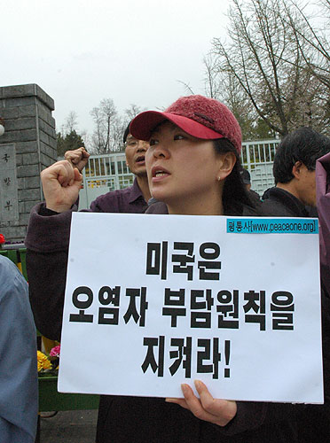 °øµ¿±æ ±¹ÀåÀº ¡°À۳⠹̱º±âÁö ¹Ýȯ Çù»ó°úÁ¤¿¡¼ º¸µí ³Ê¹«³ª ±â¸¸ÀûÀ̾ú´Ù. ´«¿¡ º¸ÀÌ´Â °Í¸¸À» °¡½ÄÀûÀ¸·Î °¨Ãß°í ±Ùº»ÀûÀÎ Á¶Ä¡´Â ¾Æ¹«°Íµµ ÀÌ·ç¾îÁöÁö ¾Ê¾ÒÀ¸¸ç ȯ°æº¹±¸¿¡ ´ëÇÑ ¹Ì±¹ÃøÀÇ ¾à¼Ó¸¶Àúµµ ¾î°å´Ù.¡±¶ó°í ±ÔźÇÏ¸é¼ ¡°¿À¿°ÀÚ°¡ ȯ°æÄ¡À¯ÀÇ ºÎ´ãÀ» Áö´Â °ÍÀÌ ±¹Á¦Àû °ü·ÊÀ̹ǷΠ´ç¿¬È÷ ¹Ì±¹ÃøÀÌ È¯°æº¹±¸ÀÇ Àǹ̸¦ ÀÌÇàÇØ¾ß ÇÑ´Ù.¡±¶ó°í Ã˱¸ÇÏ¿´´Ù.