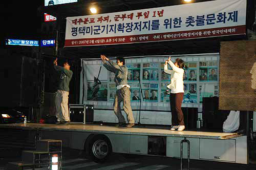 Çѱ¹Ã»³â´ÜüÇùÀÇȸÀÇ À±Èñ¼÷ ºÎÀÇÀåÀÌ »çȸ¸¦ ¸ÃÀº Ãкҹ®ÈÁ¦´Â, ¿¹Á¤µÈ ½Ã°£ÀÎ ¿ÀÈÄ 7½Ã 30ºÐº¸´Ù Á¶±Ý ´Ê°Ô ½ÃÀÛÇß´Ù. ±×¸®°í, ´ëÇлýµéÀÇ À²µ¿°ø¿¬ÀÌ Ã¹ ¼ø¼¿´´Ù. ´ëÇлýµéÀº ÆòÈ ¸¸µé±â¶ó´Â Á¦¸ñÀÇ ³ë·¡¸¦ Æ÷ÇÔ, 2°îÀÇ ¹ÎÁß°¡¿ä¿¡ ¸ÂÃß¾î ¹®¿¹¼±Àü¼±µ¿ ÃãÀ» ÈûÂ÷°Ô ¼±º¸À̸ç ÈïÀ» µ¸¿ì¾ú´Ù.