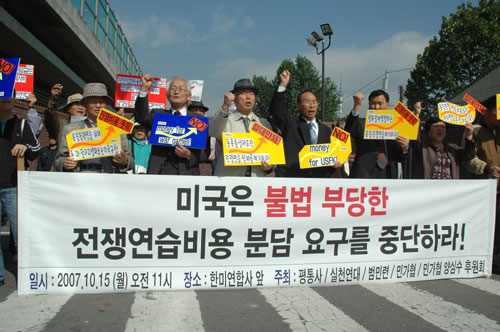 ÇѰܷ¹ ½Å¹®¿¡ µû¸£¸é ¹Ì±¹Àº Çѱ¹¿¡°Ô 2007³â RSOI(¿¬ÇÕÀü½ÃÁõ¿ø¿¬½À), UFL(À»ÁöÆ÷Ä¿½º·»Áî)¿¬½À ºñ¿ëºÐ´ã±ÝÀ» Áö³ÇØÀÇ 31¾ï ¿øº¸´Ù µÎ ¹è ¸¹Àº 62¾ï ¿øÀ¸·Î ¿Ã·ÁÁÙ °ÍÀ» ¿ä±¸ÇßÀ¸¸ç, ±¹¹æºÎ´Â ¹Ì±¹ÀÇ Çù¹Ú¿¡ ±¼º¹ÇØ 2008³â ¿¬ÇÕ¿¬½À ºñ¿ë ºÐ´ã±ÝÀ» ¿ÃÇØ 32¾ï ¿øº¸´Ù 50%³ª ´Ã¾î³ 47¾ï ¿øÀ¸·Î Ã¥Á¤ÇÑ ±¹¹æ¿¹»ê¾ÈÀ» ±¹È¸¿¡ Á¦ÃâÇß´Ù°í ÇÕ´Ï´Ù.
