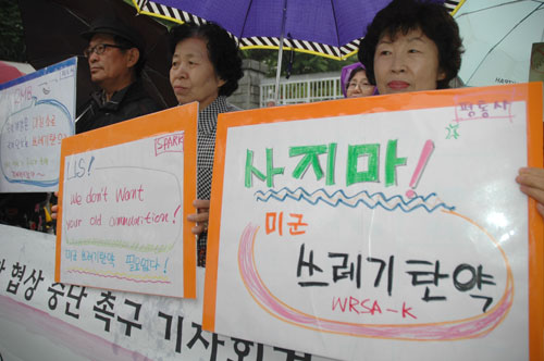 ¶ÇÇÑ ±âÀÚȸ°ß Âü°¡ÀÚµéÀº ±âÀÚȸ°ß¹®À» ÅëÇØ "Æó±âµÇ¾î¾ß ¸¶¶¥ÇÑ ÇÑ¹Ì ´ÜÀÏ Åº¾à º¸±Þ ¹× °ü¸®¿¡ °üÇÑ ÇÕÀǰ¢¼(SALS-K))ÀÇ °³Á¤À» ÅëÇØ WRSAźÀ» Æ÷ÇÔ ¹Ì±¹ ¼ÒÀ¯ ź¾àÀ» Çѱ¹±ºÀÌ ÀúÀ塤°ü¸®ÇÔÀ¸·Î ÇØ¼ ¹ß»ýÇÏ´Â ±¼¿å°ú ÇÇÇØ¸¦ Àå±âÈ"ÇÏ·Á´Â Çѹ̴籹ÀÇ ÀÔÀåÀ» °·ÂÈ÷ ±ÔźÇÏ¿´½À´Ï´Ù.