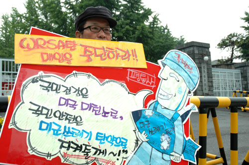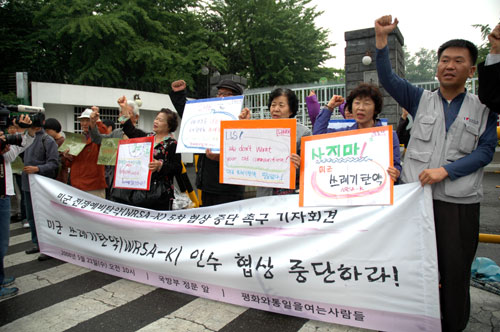 ¡â5¿ù 21ÀÏ, ¿ÀÀü 10½Ã ±¹¹æºÎ Á¤¹® ¾Õ¿¡¼ WRSA 5Â÷ Çù»ó Áß´ÜÀ» Ã˱¸ÇÏ´Â