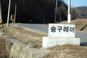 ¡â"¼Û±¸·¹¹Ì" µ¹ Ç¥½Ä µÚ·Î º¸ÀÌ´Â »êÀ» ³Ñ¾î°¡¸é ¹Ù·Î ¸¶À»ÀÌ