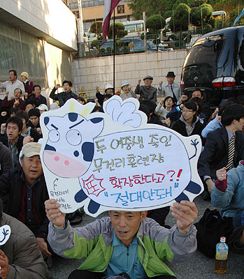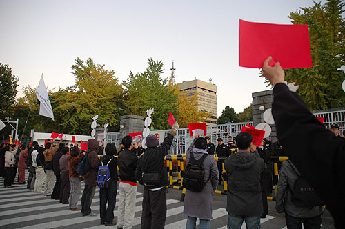 ¡ã±¹¹æºÎ Á¤¹®À» ÇâÇØ "Gates GET OUT!" Çö¼ö¸·À» ³ôÀÌ µé°í Ç×ÀÇ ÇൿÀ» Çß½À´Ï´Ù.