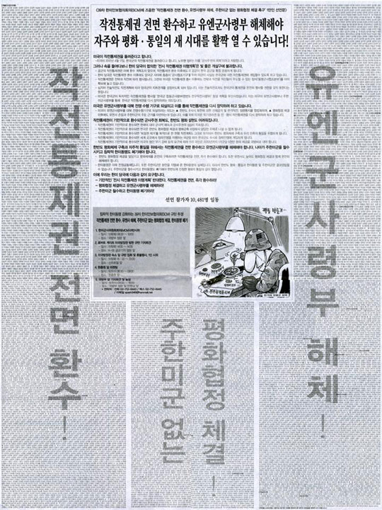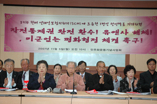 ¡â 5ÀÏ ¿ÀÀü 10½Ã ¼¿ï ¹ÎÁÖȿ±â³ä»ç¾÷ȸ¿¡¼, ÀÛÀüÅëÁ¦±Ç ¿ÏÀü ȯ¼ö! À¯¿£»ç ÇØÃ¼! ¹Ì±º¾ø´Â ÆòÈÇùÁ¤ ü°á Ã˱¸! 39Â÷ ÇÑ¹Ì ¿¬·Ê¾Èº¸ÇùÀÇȸÀÇ(SCM)¿¡ ÁîÀ½ÇÑ 1¸¸ÀÎ ¼±¾ð¹ßÇ¥ ±âÀÚȸ°ßÀÌ ¿·È½À´Ï´Ù.
