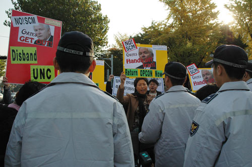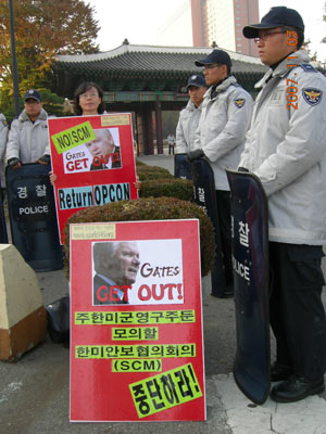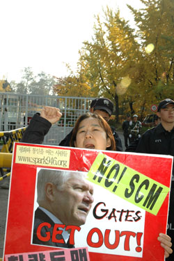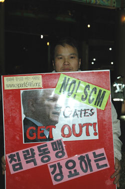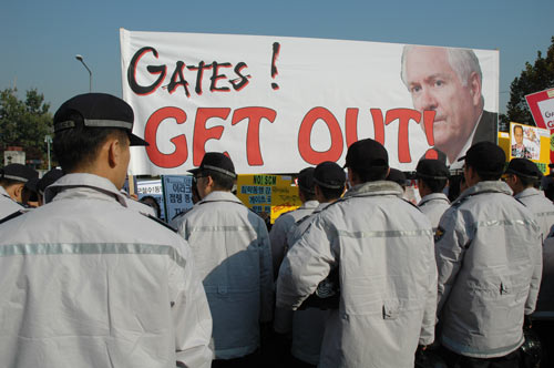 "NO! SCM" "Get Out Robert Gates" ¿ÜÄ¡¸ç °·ÂÈ÷ Ç×ÀÇÇØ