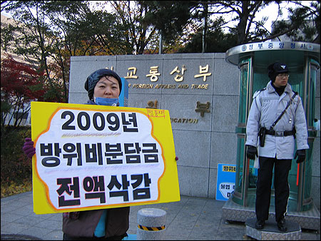 ÇÑÆí, ³· 12½ÃºÎÅÍ 5½Ã 30ºÐ±îÁö "2009³â ¹æÀ§ºñºÐ´ã±Ý ¿¹»ê Àü¾× »è°¨Ç϶ó" "¹Ì±¹ÀÌ ºÒ¹ý ÃàÀûÇÑ 1Á¶ 1õ¾ï¿ø ±¹°í·Î ȯ¼öÇ϶ó"´Â ³»¿ëÀ» °¡Áö°í ¿Ü±³Åë»óºÎ Á¤¹® ¾Õ¿¡¼ ¸±·¹ÀÌ 1ÀνÃÀ§¸¦ ÁøÇàÇÏ¿´½À´Ï´Ù. 12½Ã ºÎÅÍ ÁøÇàµÈ 1ÀÎ ½ÃÀ§´Â °øµ¿±æ, ¿À¹ÌÁ¤, ¿ÀÇý¶õ, ¹Ú¼®ºÐ, ȲÀ±¹Ì ´ÔÀÌ Â÷·Ê·Î ¼ö°íÇϼ̽À´Ï´Ù.