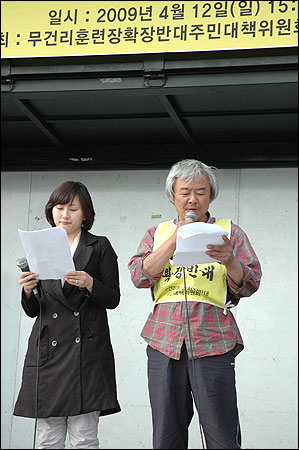 ÇàÁø¿¡ ¾Õ¼ ÁֹδëÃ¥À§ ¼°æÀÚ ºÎÀ§¿øÀå´ÔÀÇ »çȸ·Î '±¹¹æºÎÀÇ °Á¦¼ö¿ë ÀúÁö! ¹«°Ç¸® ÈÆ·ÃÀå È®Àå ÀúÁö!'¸¦ Ã˱¸ÇÏ´Â Áýȸ°¡ ¿·È½À´Ï´Ù. ¹«°Ç¸® ÁֹεéÀ» ºñ·ÔÇÏ¿©, ÆòÅë»ç, ¹ÎÁÖ³ëÃÑ, ½Ã¹Î»çȸ´Üü ȸ¿øµî ¾à 250¿©¸íÀÌ Âü¼®ÇÏ¿´½À´Ï´Ù.