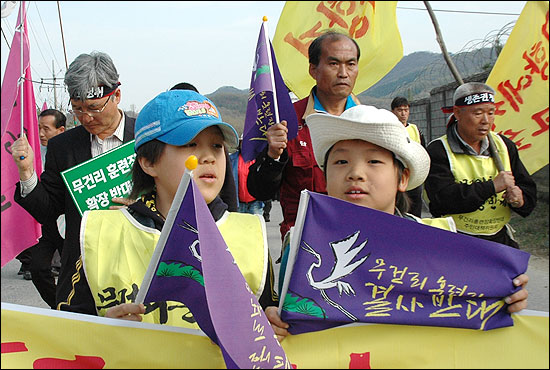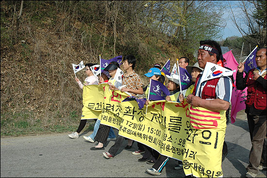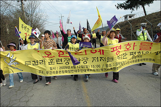 Áö³ 2002³â ¿©±â¼ Á÷¼±°Å¸® 800m¹Û¿¡ ¾ÈµÇ´Â È¿Ã̸®¿¡¼ ¹Ì±ºÀå°©Â÷°¡ È¿¼øÀÌ ¹Ì¼±À̸¦ ±ò¾ÆÁ×ÀÎ ÀÌÈÄ ¹Ì±ºÀÌ ÈÆ·ÃÀ» ¿¬°£ 20ÀÏÁ¤µµ ¹Û¿¡ ¸øÇϰí ÀÖ°í ¿ÃÇØ´Â ´Ü ÇÏ·çµµ ¸øÇß´Ù.¹Ì±ºµéÀº ¿©±â¼ Á¾ÇÕ±âµ¿ÈÆ·ÃÀ» Çϰí ÀÓÁø° ´Ù±×¸¶³ë½º ¹Ì±º Àü¿ëÈÆ·ÃÀå¿¡¼ µµÇÏÈÆ·ÃÀ» Çϰí, ¹ÎÅë¼± ¾ÈÀÇ ½ºÅ丮 ¹Ì±ºÀü¿ëÈÆ·ÃÀå¿¡¼ ´ëºÏÀüÀ↓½ÀÀ» ÇÑ´Ù. ¶Ç K-9 ÀÚÁÖÆ÷ »ç°Å¸®°¡ 40kmÀε¥ ¿©±â¼ °³¼º±îÁö°¡ 36km¹Û¿¡ ¾ÈµÇ¹Ç·Î ¿©±â¼ ºÏÀ» °Ü³ÉÇÑ ¸ðµç ÈÆ·ÃÀº Çѹݵµ Æòȸ¦ À§ÇùÇÑ´Ù. µû¶ó¼ ¹«°Ç¸® ÈÆ·ÃÀå È®ÀåÀúÁö´Â ÁÖ¹Îµé »ýÁ¸±ÇÂ÷¿ø¿¡¼ »Ó¸¸ ¾Æ´Ï¶ó Çѹݵµ¿Í µ¿ºÏ¾Æ Æòȸ¦ À§Çؼµµ ¹Ýµå½Ã ¸·¾Æ³»°í ½Â¸®ÇØ¾ß ÇÑ´Ù. ¿ì¸®µéÀÌ Áֹεé°ú ¿¬´ëÇÏ´Â ¸¸Å ½Â¸®ÀÇ ³¯Àº ¾Õ´ç°ÜÁú °ÍÀÌ´Ù. ÁֹεéÀÇ »ýÁ¸°ú Çѹݵµ ÆòÈÀû »ýÁ¸±ÇÀ» À§ÇØ ÅõÀïÇϴµ¥ Áֹε鿡°Ô ³Ê¹« ¹«°Å¿î ½ÊÀÚ°¡¸¦ Áö°ÔÇÏÁö ¸»ÀÚ. ¿¬´ëÅõÀïÀ¸·Î ÁֹεéÀÇ ÇÇ´«¹°À» ´Û¾ÆÁÖ±â À§ÇØ Èû¾²ÀÚ. ½Â¸®ÇÒ ¶§±îÁö Áú±â°Ô ÅõÀïÇÏÀÚ"¸ç ¿¬´ëÅõÀïÀ» Ã˱¸ÇÏ¿´½À´Ï´Ù.