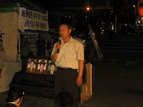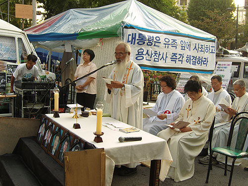 ±èÁ¾ÀÏ »ç¹«Ã³Àå(ÆòÈ¿Í ÅëÀÏÀ» ¿©´Â »ç¶÷µé)ÀÇ »çȸ·Î ½ÃÀÛµÈ '¿ë»ê »ìÀÎÁø¾Ð Ã¥ÀÓÀÚ Ã³¹ú À̸í¹Ú Á¤±Ç ±Ôź Ãкҹ®ÈÁ¦'´Â ù ¼ø¼·Î ¹èÁ¾·Ä »óÀÓ´ëÇ¥(ÆòÈ¿Í ÅëÀÏÀ» ¿©´Â »ç¶÷µé)ÀÇ ¿©´Â ¸»¾¸, ±è¿µ½Ä Àå·Î(Àü³² ¹«¾È ¿ëÇб³È¸)ÀÇ ¿¬´ë¹ß¾ð, Áß¾Ó´ë Á¤°æ´ë ÇлýµéÀÇ ¹ß¾ð°ú À²µ¿, ¿ë»ê4±¸¿ª ¼¼ÀÔÀÚö´ëÀ§ ÇѺÐÀÌ ¸¶¹«¸® ¹ß¾ðÀ» ÇÏ´Â °ÍÀ¸·Î Â÷ºÐÇÏ°Ô ÁøÇàÀÌ µÇ¾ú½À´Ï´Ù. "Áú±ä ³ðÀÌ ½Â¸®ÇÑ´Ù" "½Â¸®ÇÒ ¶§±îÁö ÅõÀïÇÏÀÚ" µîÀÇ ±¸È£¸¦ ÇÔ²² ¿ÜÄ¡¸é¼ Âü°¡ÀÚµéÀº ÀüÀǸ¦ ±»°Ô ´ÙÁ³½À´Ï´Ù.