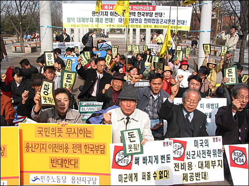 ¡ã '»À ºüÁö°Ô ¹øµ· ¹Ì±º¿¡°Ô ÆÛÁÙ ¼ö ¾ø´Ù!!' Áýȸ Âü¼®ÀÚµéÀÌ ÈûÂù ±¸È£¸¦ ¿ÜÄ¡°í ÀÖ´Ù. [»çÁø - ÆòÈ¿ÍÅëÀÏÀ»¿©´Â»ç¶÷µé]