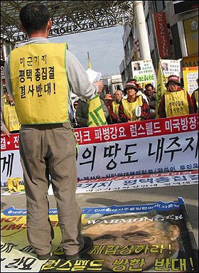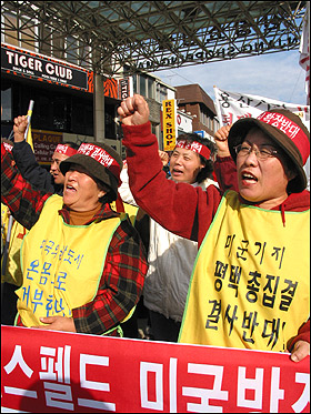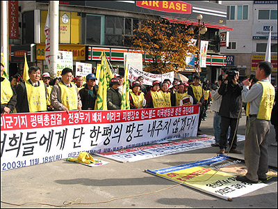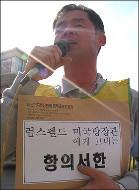 ¡ã18ÀÏ ¿ÀÈÄ 1½Ã°æ ¼Ûź '¿À»ê°ø±º±âÁö'(K55)¾Õ¿¡¼ ·³½ºÆçµå ¹Ì ±¹¹æÀå°ü ¹æÇÑÀ» ¹Ý´ëÇÏ´Â Áýȸ¸¦ ÆòÅÃ, ÆØ¼º, ¼Åº¸é Áֹεé°ú ¼¿ï¿¡¼ ³»·Á¿Â ¹ÎÁֳ뵿´ç, ÆòÅë»ç ȸ¿øµî 100¿©¸íÀÌ Âü°¡ÇØ ±ÔźÁýȸ¸¦ ÁøÇàÇß´Ù.