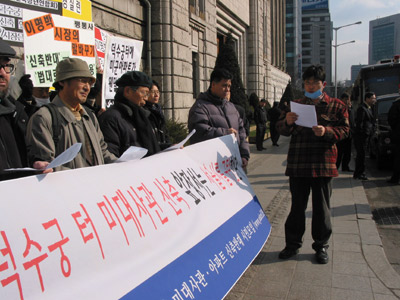 [2004. 2. 6] ¹®ÈÀçÀ§¿ø¿¡ ºÎ´çÇÑ ¾Ð·Â Çà»çÇÏ¸ç ´ö¼ö±ÃÅÍ ¹Ì´ë»ç°ü ½ÅÃà ¾ÕÀå¼´Â ¼¿ï½Ã ±Ôź±âÀÚȸ°ß º¸°í
