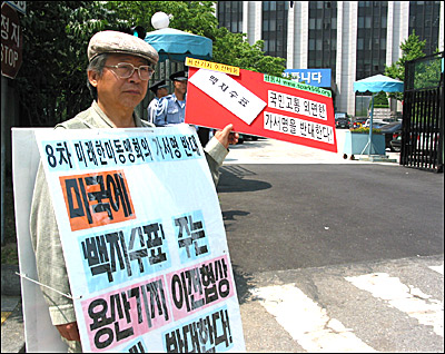 ¡ã Áß¾Óû»ç Á¤¹® ¾Õ¿¡¼ ÀÏÀνÃÀ§¸¦ ÁøÇàÇÏ´Â È«±Ù¼ö »óÀÓ´ëÇ¥ [»çÁø - ÆòÈ¿ÍÅëÀÏÀ»¿©´Â»ç¶÷µé]