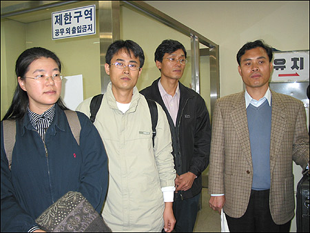 11¿ù 20ÀÏ ¿ÀÀü 11½Ã 10ºÐ, ¼¿ïÁö°Ë ¾Õ¿¡¼ »ç¹ý´ç±¹ÀÇ ºÎ´çÇÑ ¹ú±ÝÇü¿¡ ºÒº¹ÇÏ¿© ÀÚÁøÃâµÎ¿¡ ³ª¼± ±èÆÇÅÂ, °øµ¿±æ, ÀÌÇü¼ö, ÀÌ°æ¾Æ ³× ¸íÀÇ ÆòÅë»ç ½Ç¹«ÀÚ°¡ ±âÀÚȸ°ßÀ» °¡Áø ÈÄ °ËÂû¿¡ ÃâµÎÇß½À´Ï´Ù.