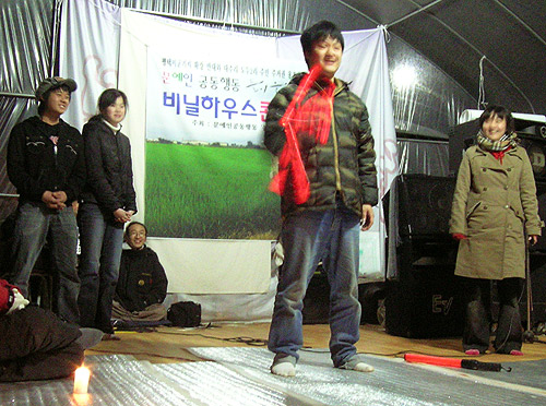 ±×·¯³ª, 12ÀÏ Àú³á 6½Ã 60ºÐ °æ, ¸ðÆ÷ Çϳª¾¿À» µé°í ºñ´ÒÇϿ콺·Î ¸ð¿©µå´Â À̵éÀº º¯ÇÔÀÌ ¾ø´Ù. ¸ÕÀú ÀÚ¸®ÀâÀº ÇÒ¸Ó´Ï, ÇҾƹöÁöµéÀº µÚµû¶ó µé¾î¿À´Â ÀþÀº ÁöÅ´À̵éÀÇ ¼ÕÀ» ÀÏÀÏÀ» Àâ¾ÆÁÖ¸ç ÃßÀ§¸¦ ´Ùµ¶¿© ÁÖ°í ¸ðÆ÷¸¦ ¾çº¸(?) ÇÏ¿´´Ù. ±×·¯¸é¼ "¿ì¸® ´ÄÀºÀ̵éÀº µ¶Çؼ ÃßÀ§µµ ¸ø´À²¸..."ÇϽŴÙ.
