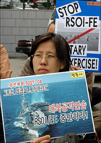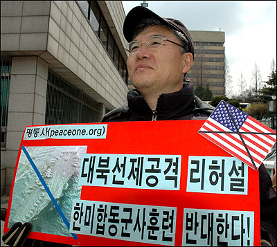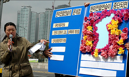 ÆòÈ¿ÍÅëÀÏÀ»¿©´Â»ç¶÷µé(ÀÌÇÏ ÆòÅë»ç)Àº 28ÀÏ 12½Ã ±¹¹æºÎ ¾Õ¿¡¼ Á¦55Â÷ ÆòȱºÃàÁýȸ¸¦ °³ÃÖÇÏ¿© ¡°Çѹ̾籹ÀÌ ½Ç½ÃÇÏ´Â À̹ø Çѹ̿¬ÇÕ¿¬½ÀÀº ´ëºÏ¾ïÁ¦¸¦ À§ÇÑ Çѹݵµ¿¡¼ ÀüÀïÀ§±â¸¦ °íÁ¶½ÃŰ°í ³²ºÏÈÇØ¸¦ ±ú¶ß¸®´Â °Í¡±À̶ó°í ÁÖÀåÇÏ¸é¼ Çѹ̿¬ÇÕ¿¬½À Áß´ÜÀ» Ã˱¸Çß´Ù.