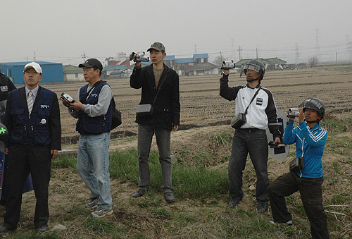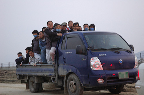 ¡â ¾ç¼öÀå ±Ùó, µÎ ´ëÀÇ ·¹¹ÌÄܰú 3´ëÀÇ Æ÷Å©·¹ÀÎ, 1´ëÀÇ °ßÀÎÂ÷¸¦ ³ëµ¿ÀÚµéÀÌ ¸·°í ÀÖ´Ù.
