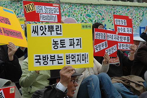 Æòȹٶ÷ ´ëÇ¥ ¹®Á¤Çö ½ÅºÎ´Â ´ëȸ»ç¸¦ ÅëÇØ ¡®À̰÷ÀÌ ¹Ý¹Ì¿¬´ëÁýȸÀÇ ¸ÞÄ«ÀÌ´Ù.¡¯¸ç ¡®¸ðµç ÃÐÁ¡À» À̰÷¿¡ ¸ÂÃç¾ß ÇÑ´Ù.¡¯°í È£¼ÒÇß´Ù. ¹®½ÅºÎ´Â ¡®³ó»ç²ÛÀº öÀÌ µÇ¸é º»´ÉÀûÀ¸·Î ³ó»ç¸¦ Áþ´Â´Ù. À̰ÍÀº ¾ÆÁÖ ÀÚ¿¬½º·¯¿î °ÍÀÌ´Ù. À̰ÍÀ» °Á¦·Î ¸·À¸·Á´Â ±¹¹æºÎÀÇ ÇàÅ¿¡ ÃÊÁ¡À» ¾ð·ÐÀÌ ¸ÂÃç¾ß ÇÑ´Ù. ±×·±µ¥ ¿Ü±³¹®Á¦ ¿î¿îÇÏ´Â º¸µµ¸¸ Çϰí ÀÖ´Ù.¡¯¸ç ÃÖ±Ù º¸¼ö¾ð·ÐÀÇ º¸µµ¸¦ ²¿Áý¾ú´Ù. ¹®½ÅºÎ´Â ¡®ÀÌ·¸°Ô ¿Ü±³¹®Á¦¸¦ ¿î¿îÇÏ´Â °ÍÀÌ ÆòÅù̱º±âÁöÈ®Àå ¹®Á¦ÀÇ º»ÁúÀ» °¡¸± ¼ö´Â ¾ø´Ù.¡¯¸ç ¡®¿ì¸®´Â À̰å´Ù. ¾ÕÀ¸·Îµµ °è¼Ó ÀÌ±æ °ÍÀÌ´Ù. ¿ì¸®¿¡°Ô´Â Á¤´çÇÔÀÌ Àֱ⠶§¹®ÀÌ´Ù.¡¯°í ÁÖÀåÇß´Ù.