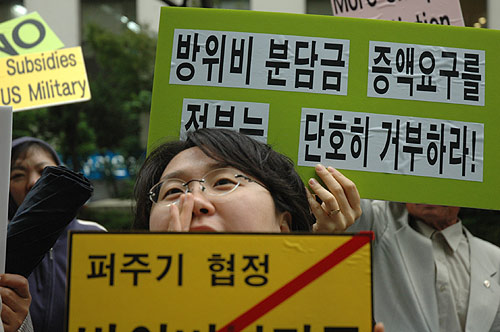 ƯÈ÷ ¹Ì±¹ÀÌ ÁÖÇѹ̱º Á÷°£Á¢Áö¿ø ºñ¿ë À̿ܿ¡µµ ¿ë»ê±âÁö ¹× ¹Ì2»ç´Ü ÀÌÀü µî ¹Ì±º±âÁöÀç¹èÄ¡ ºñ¿ë 50~55¾ï ´Þ·¯´Â ¹°·Ð ȯ°æ¿À¿° º¹±¸ºñ¿ë 5000¾ï¿ø, ÆòÅñâÁö È®ÀåÀ» À§ÇÑ ¼ºÅäºñ¿ë 5000¾ï¿ø ±îÁö ¸ðµÎ Çѱ¹ÀÌ ºÎ´ãÇϵµ·Ï ¿ä±¸Çϰí ÀÖ°í, 2006³â À̶óÅ© ÆÄº´ºñ¿ë 1400¾ï¿ø ±îÁö Æ÷ÇÔÇϸé Çѹ̵¿¸Í ¼Ò¿ä¿¹»êÀÌ ´«µ¢ÀÌó·³ ºÒ¾î³ª°í ÀÖ´Â Çö½Ç¿¡¼ ¶Ç ÀϹæÀûÀ¸·Î ¡®ÆÛÁÖ±â½Ä¡¯ Çù»óÀ» ÁøÇàÇÒ °æ¿ì ±¹¹ÎÀÇ Áöź°ú ÀúÇ×À» ¹ÞÀ» °ÍÀ̶ó°í °æ°íÇß´Ù.