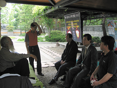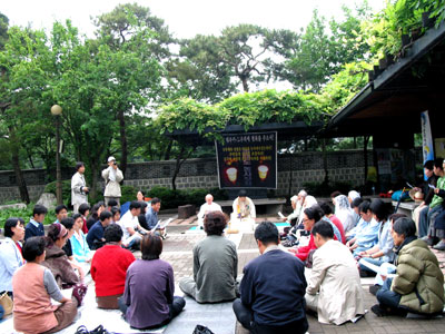 ¡ãÆòÅÃ, ´ëÃ߸®¡¤µµµÎ¸® Áֹεé°ú õÁÖ±³ ´Üü ´ëÇ¥ºÐµéÀÌ Ã»¿Í´ë ¾Õ È´Ü¿¡ ¸ð¸¦ ½É°í ÀÖ´Ù.