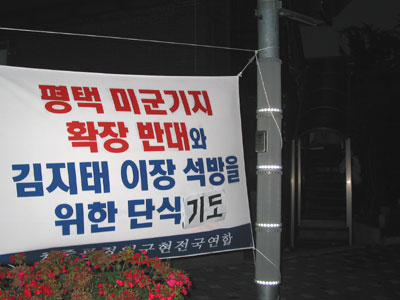 ¹Ì±¹ÀÇ Á¾À̵Ǿî, ¸¹Àº ±¹¹ÎÀÌ ¹Ý´ëÇÏ´Â ÆòÅù̱º±âÁö È®ÀåÀ» °Á¦·Î ÃßÁøÇϰí ÀÖ´Â Á¤ºÎ¿Í ±¹¹æºÎ¸¦ °·ÂÈ÷ ±ÔźÇϸç, "ÆòÅà ¹Ì±º±âÁö È®Àå ÀúÁö!, ±èÁöÅ À§¿øÀå Áï°¢ ¼®¹æ!"À» ¿Â ±¹¹ÎÀÌ ¾ÕÀå¼ ¿ÜÃÄ¾ß ÇÒ °ÍÀÌ´Ù. °áÄÚ ¿ì¸® »îÀ», Á¤ºÎ¿Í º¸¼ö¾ð·Ð´ÜüÀÇ °ÅÁþÀ¸·Î ¹°µå·Á¼´Â ¾È µÉ °ÍÀÌ´Ù.