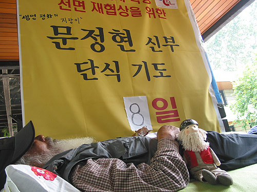 ¹®Á¤Çö ½ÅºÎ´ÔÀº Áö³ 6ÀÏ ÆØ¼ºÁֹδëÃ¥À§ ±èÁöÅ À§¿øÀåÀÇ ±¸¼Ó¹æÄ§¿¡ Ç×ÀÇÇϸç, ÆòÅðæÂû¼¿¡¼ ´Ü½ÄÀ» ½ÃÀÛÇÑÁö 3Àϰ¿¡ Á¢¾îµé¾ú´Ù. ¹®Á¤Çö ½ÅºÎ´ÔÀÇ ´ëÁ¤ºÎ ¿ä±¸»çÇ×Àº ¡â±¸¼ÓÀÚ ¼®¹æ ¡â´ëÃ߸®,µµµÎ¸®¿¡¼ ±º.°æ ö¼ö ¡âÁֹεéÀÇ ¿µ³óÇàÀ§ º¸Àå ¡âÆòÅù̱º±âÁöÈ®Àå ÀçÇù»ó µîÀÌ´Ù. ¹®Á¤Çö ½ÅºÎ´ÔÀº "ÀÌÁ¦ ´õ ÀÌ»ó ¸¶À» ÁֹεéÀÇ ¾ó±¼À» º¼ ¼ö°¡ ¾ø´Ù!"¸ç "À̰÷ û¿Í¶§±îÁö ¿Â ÀÌ»ó ÀǽÄÀÌ ÀÖ´ÂÇÑ ³¡±îÁö °ßµð°Ú´Ù!"°í ¸»¾¸Çϼ̴Ù. ¸öÀº Á» ¾î¶°½Ã³Ä´Â Áú¹®¿¡´Â "¸öº¸´Ù ¸¶À½ÀÌ ¾ÆÆÛ..."¶ó°í ¸»¾¸Çϼ̴Ù.