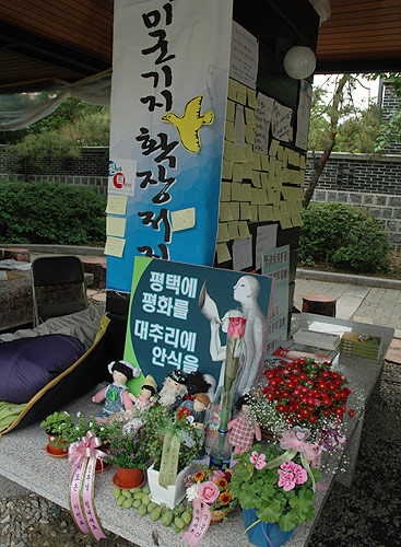 ÆòÅë»çȸ¿øµéÀº û¿Í´ë¾Õ ³ó¼ºÀå¿¡ Æòȹٶ÷ ½Ä±¸µé°ú ÇÔ²² ¹®Á¤Çö ½ÅºÎ´ÔÀÇ °çÀ» Áö۰í ÀÖ´Ù.