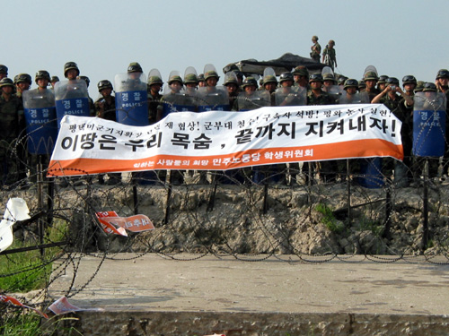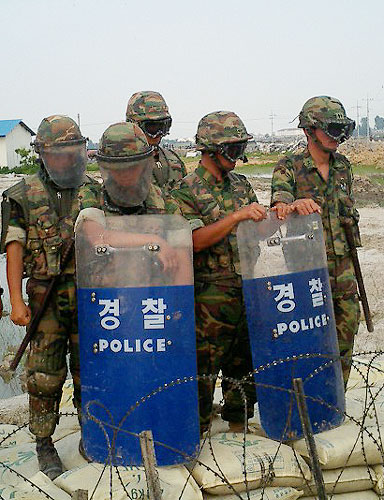 ¿ÀÈÄ 3½Ã °æ º¸Æ®¸¦ ÀÌ¿ëÇØ ¾È¼ºÃµ¿¡¼ ¼ö»ó½ÃÀ§¸¦ ¹úÀΠû³âÇлýµéÀº Ȳ»õ¿ï öÁ¶¸Á ¾Õ¿¡ µµÂøÇßÀ¸¸ç °ð¹Ù·Î °æÂû Çï±â¿Í ±º Çï±â°¡ »ó°ø¿¡ ¶¹´Ù°í ÇÕ´Ï´Ù. °æÂû°ú ±º º´·ÂÀÌ ÇлýµéÀÇ À°Áö»ó·úÀ» ¸·±â À§Çؼ öÁ¶¸ÁÀ» µû¶ó ´ë±âÇϰí ÀÖÀ¸¸ç ±ºÀº °æ°í¹æ¼ÛÀ» Çϸç "»ó·úÇÒ °æ¿ì ±º»ç¹ý À§¹ÝÀ¸·Î Çü»çó¹ú ¹Þ°Ô µÉ °Í"À̶ó°í Çß½À´Ï´Ù.