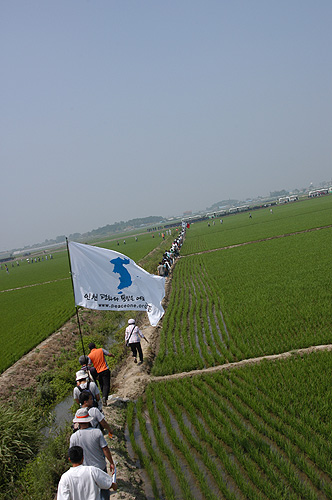 ÇÑÆí, µµµÎ2¸®¿¡¼ Àΰ£¶ìÀÕ±â Çà»ç¸¦ ¸¶Ä£ ´ë¿Àµéµµ 7½Ã ÆòÅÿª ÃкÒÁýȸ¿¡ Âü°¡Çϱâ À§ÇØ ³ó·Î¸¦ µû¶ó µÐÆ÷ÂÊÀ¸·Î À̵¿ÁßÀÔ´Ï´Ù.