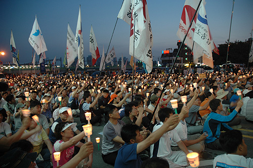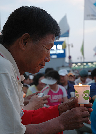 ¡âÆòÅýùΠÇѸ¶´ç¿¡ ¸ðÀÎ Âü°¡ÀÚµéÀÌ ÇÑ ¼Õ¿¡ ÃкÒÀ» µé°í ÀÖ´Ù. ¨Ï¹ÎÁßÀǼҸ® ±èö¼ö ±âÀÚ