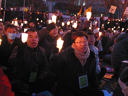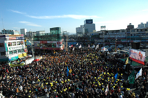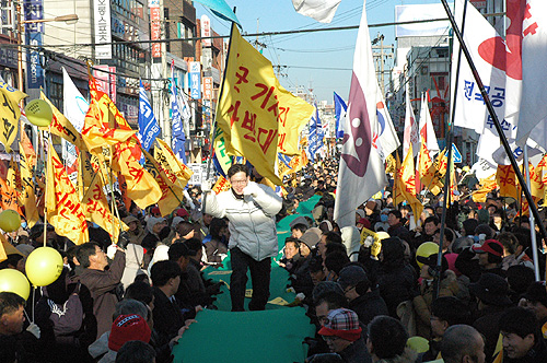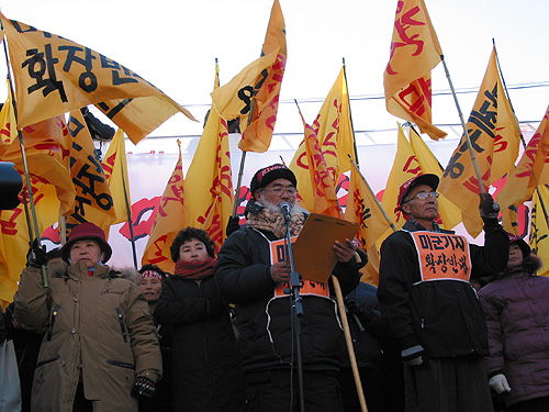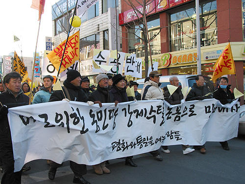 ¡ã 12¿ù 11ÀÏ 2½Ã, 2Â÷ ÆòÈ´ëÇàÁøÀÌ ÆØ¼º ÁֹεéÀ» ºñ·ÔÇÑ ³ó¹Î, ³ëµ¿ÀÚ, Çлý, û³â µî 7000¿©¸íÀÌ ¸ðÀÎ °¡¿îµ¥ ÆòÅÿª ¾Õ ¿À°Å¸®¿¡¼ ¿·È´Ù.