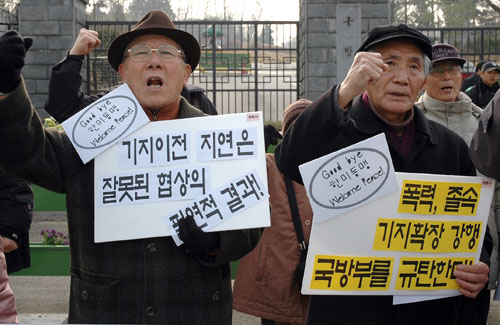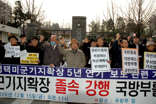 Áö³ 12¿ù14ÀÏ, °¢Á¾¾ð·ÐÀº Çѹ̴籹ÀÌ ´çÃÊ 2008³â±îÁö ¿Ï·áÇϱâ·Î Çß´ø ÆòÅù̱º±âÁö È®ÀåÀÌ 2013³â¸»·Î ´ÊÃçÁú °ÍÀ̶ó¸ç À̰ÍÀº Çѹ̰£ Çù»óÁö¿¬, ±âÁöÈ®Àå ¹Ý´ëÅõÀï µî¿¡ µû¸¥ °ÍÀ̶ó°í º¸µµÇß´Ù. ÆòÅù̱º±âÁöÈ®ÀåÀúÁö ¹ü±¹¹Î´ëÃ¥À§(ÀÌÇÏ, ÆòÅùü´ëÀ§)´Â 15ÀÏ ¿ÀÀü11½Ã ±¹¹æºÎ ¾Õ¿¡¼ ±âÀÚȸ°ßÀ» °®°í ÀÌ¿¡ ´ëÇÑ ÆòÅùü´ëÀ§ÀÇ ÀÔÀåÀ» ¹ßÇ¥ÇÏ°í ÆòÅðü·Ã ÀçÇù»óÀ» Ã˱¸Çß´Ù.