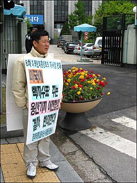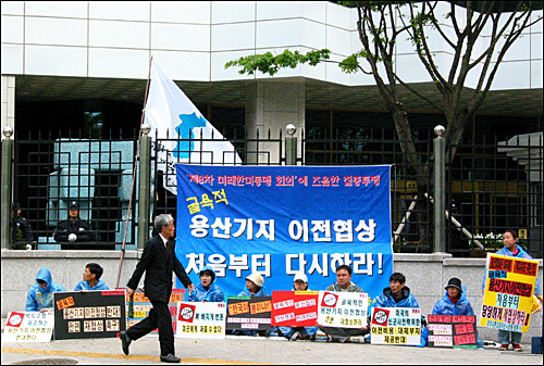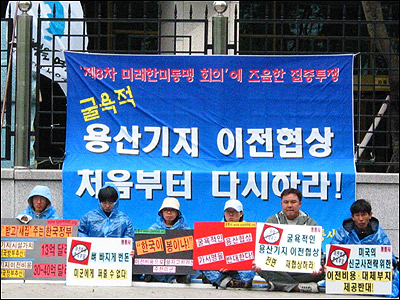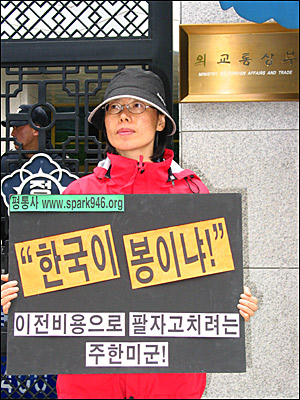 ¡ã 'Çѱ¹ÀÌ ºÀÀ̳Ä!!' ¿ÜÅëºÎ ÃâÀÔ¹® ¾Õ¿¡¼ ÀÎõÆòÅë»ç ¿ÀÇý¶õ ´ëÇ¥°¡ ÇÇÄϽÃÀ§¸¦ ¹úÀ̰í ÀÖ´Ù. [»çÁø - ÆòÈ¿ÍÅëÀÏÀ»¿©´Â»ç¶÷µé]
