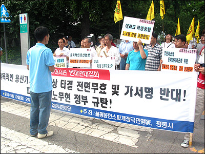¡â Á¦59Â÷ ¹Ý¹Ì¿¬´ëÁýȸ°¡ 10ÀÏ ¿ÀÈÄ ±¤È¹® ¿¸°½Ã¹Î°ø¿ø¿¡¼ ¿·È´Ù. ¾à 50¿© ¸íÀÇ Âü¼®ÀÚµéÀº ±â¸¸ÀûÀ¸·Î ÁøÇàµÈ ¿ë»êÇù»óÀº ¹«È¿ÀÓÀ» ¼±¾ðÇß´Ù. [»çÁø - 'ÆòÈ¿Í ÅëÀÏÀ» ¿©´Â »ç¶÷µé']