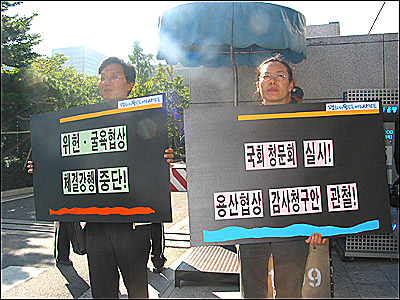 ¡â ±¹È¸ Åë¿ÜÅëÀ§ÀÇ ¿ÜÅëºÎ ±¹°¨ÀÌ ÀÖ´Â 5ÀÏ ¿ÀÀü, ÆòÅë»ç ½Ç¹«ÀÚµéÀº ¿ÜÅëºÎ Á¤¹®°ú ÈĹ®¿¡¼ ±¼¿åÇù»óÀÇ ÀçÇù»óÀ» Ã˱¸ÇÏ´Â ÇÇÄÏÆÃÀ» ÁøÇàÇß´Ù.