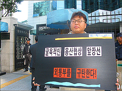 10¿ù 4ÀÏ ¿ÀÀü 9½Ã 30ºÐºÎÅÍ ¿Ü±³Åë»óºÎ Á¤¹®°ú ÈĹ®¿¡¼ ±¼¿åÀû ¿ë»êÇù»ó ÀçÇù»óÀ» Ã˱¸ÇÏ´Â ÇÇÄÏÆÃÀ» ÁøÇàÇß½À´Ï´Ù.
