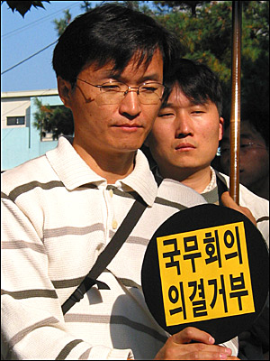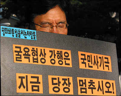 ¡â º¯¿¬½Ä ÆòÅë»ç °øµ¿´ëÇ¥°¡ '¿ë»êÇùÁ¤ À§ÇåÀÌ´Ù! ±¹¹«È¸ÀÇ ÀÇ°á °ÅºÎÇ϶ó!'´Â ³»¿ëÀÇ ±âÀÚȸ°ß¹®À» ³¶µ¶Çϰí ÀÖ´Ù.