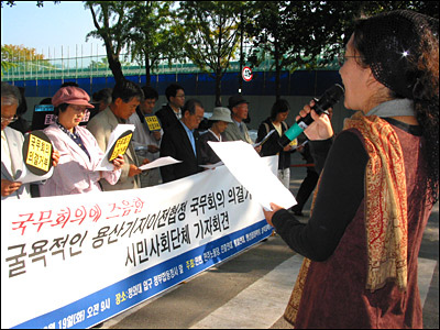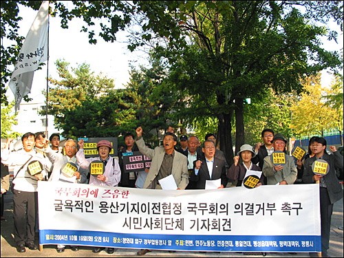 ¡â 19ÀÏ ¿ÀÀü, °¢°è ½Ã¹Î»çȸ´ÜüµéÀº ±¹¹«È¸Àǰ¡ ¿¸®´Â û¿Í´ë Àα٠Á¤ºÎÇÕµ¿Ã»»ç ¾Õ¿¡¼ ±âÀÚȸ°ßÀ» ¿°í '¿ë»ê±âÁöÀÌÀüÇùÁ¤¾ÈÀÇ ±¹¹«È¸ÀÇ ÀÇ°á °ÅºÎ'¸¦ Ã˱¸Çß´Ù.