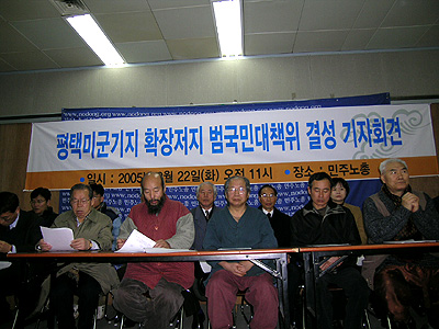 ´ëÇ¥ÀÚȸÀÇ¿¡¼´Â 2005³â »ç¾÷¸ñÇ¥·Î 'ÆòÅà ¹Ì±º±âÁö È®Àå¹Ý´ëÀÇ Àü±¹Àû ¿©·ÐÀ» Çü¼ºÇÑ´Ù', 'ÇöÁö Áֹεé°ú °·ÂÇÏ°Ô ¿¬´ëÇ× ÆòÅà ¹Ì±º±âÁö È®ÀåÀ» ÀúÁöÇÑ´Ù'·Î Àâ°í, ¹Ì±ºÀç¹èÄ¡ÀÇ ¹®Á¦Á¡°ú ÅäÁö °Á¦¼ö¿ëÀÇ ¹®Á¦Á¡ µî¿¡ ´ëÇÑ ¹ü±¹¹Î¼¸í¿îµ¿À» Á¦¾ÈÇϰí, ±¸Ã¼Àû ³»¿ë¿¡ ´ëÇÑ ¿µ¿ªº° »ç¾÷°èȹÀ» È®Á¤ÇÏ¿´´Ù.