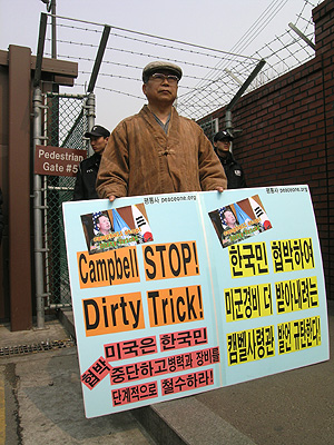 ÆòÈ¿ÍÅëÀÏÀ»¿©´Â»ç¶÷µé(ÆòÅë»ç)´Â 2ÀÏ ³·12½ÃºÎÅÍ ÇÑ ½Ã°£¿©, ¹Ì8±º»ç·ÉºÎ 5¹ø °ÔÀÌÆ® ¾Õ¿¡¼ ¡®Ä·º§ ¹Ì8±º»ç·É°üÀÇ Çѱ¹¹Î Çù¹Ú ±Ôꡝ ÀÏÀνÃÀ§¸¦ Àü°³ÇÏ¿´´Ù