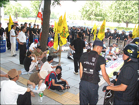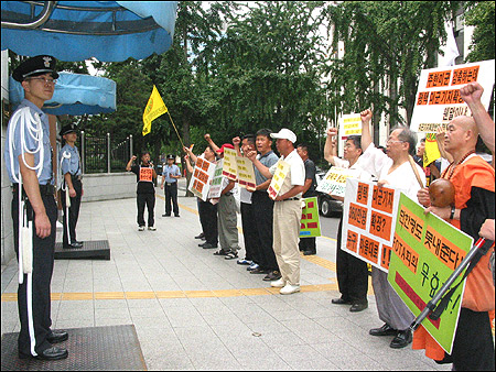 ¡â Á¤ºÎû»ç ¾Õ¿¡¼ÀÇ ³ó¼ºÀº Á¾·Î¼ ÃøÀÌ 'ÁÖ¿äµµ·Î'¶ó´Â ÀÌÀ¯¸¦ µé¸ç °è¼Ó ±ÝÁöÅ뺸¸¦ Çß´Ù.