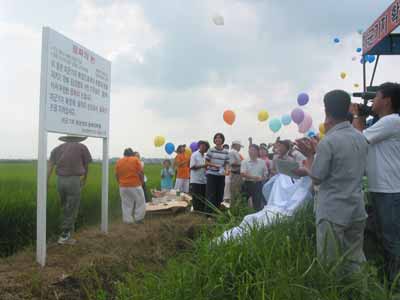 'ÆòÈÀÇ ³í'Àº Áö³ 2002³âºÎÅÍ ¹Ì±º±âÁö ÀÌÀüÀ» ¹Ý´ëÇÏ´Â ½Ã¹ÎµéÀÌ '¶¥ ÇÑÆò »ç±â ¿îµ¿'À» ÅëÇØ °æ±âµµ ÆòÅýà ±Ý°¢¸® 1135¹øÁöÀÇ 605ÆòÀÇ ¶¥À» »ç¼ 307¸íÀÌ ÁöÁÖ·Î µî±âµÅÀÖ´Ù.