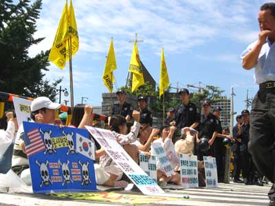 ¡ã "'Á¦2ÀÇ À»»çÁ¶¾à' ±¼¿åÀûÀÎ ¿ë»êÇùÁ¤¾È Áï°¢ ¹«È¿ÈÇϰí Àü¸é ÀçÇù»óÇ϶ó"´Â ¿äÁöÀÇ ±âÀÚȸ°ß¹®À» ³¶µ¶ÇÏ´Â ¹Ì±º±âÁöÈ®Àå¹Ý´ëÆòÅôëÃ¥À§ ³²Á¤¼ö °øµ¿´ëÇ¥.