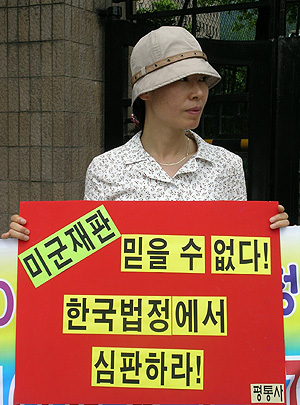 À̵éÀº ±âÀÚȸ°ß¿¡¼ Áö³ 6¿ù 10ÀÏ ¹ß»ýÇÑ µ¿µÎõ ¹Ì±ºÆ®·° ¾Ð»ç»ç°ÇÀº °ø¹« Áß ¹ß»ýÇÑ »ç°ÇÀ¸·Î ¹Ì±º´ç±¹ÀÌ 1Â÷Àû ÀçÆÇ±ÇÀ» °¡Áö°í ÀÖÀ¸³ª, ¹Ì±º´ç±¹ÀÌ ÀçÆÇÇÒ °æ¿ì Áö³ ¡®¿©Áß»ý »ç°Ç¡¯¿¡ ´ëÇÑ ¹Ì±º¹ý¿øÀÇ ¹«ÁËÆò°á¿¡¼ º¸µí Áø»ó±Ô¸í°ú Ã¥ÀÓÀÚó¹úÀ» ±â´ëÇÒ ¼ö ¾ø´Ù¸ç, Çѱ¹¹ýÁ¤¿¡¼ ÀçÆÇÀÌ ÀÌ·ç¾î Áú ¼ö ÀÖµµ·Ï ÀçÆÇ±Ç Æ÷±â ¿äûÀ» ¹ý¹«ºÎ¿¡ Ã˱¸ÇÏ¿´´Ù.