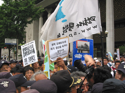 »ð°ú ³´À¸·Î Á¤ºÎÀÇ ÅäÁö¼ö¿ë½Ç½Ã°èȹ½ÂÀΰí½Ã ¹®¼¸¦ ºÎ¼ö´Â ÆÛÆ÷¸Õ½º¸¦ ÁøÇàÇÑ µÚ, Âü°¡ÀÚµéÀº Ç×ÀǼÇÑÀ» Àü´ÞÇϱâ À§ÇØ Á¤ºÎû»ç·Î ÇâÇßÀ¸³ª °æÂû¿¡ °¡·Î¸·Çô Çѵ¿¾È ´ëÄ¡ÇÏ´Ù°¡ ¹®Á¤Çö, ±èÁöÅ »óÀÓ°øµ¿´ëÇ¥ µî 4¸íÀÇ ´ëÇ¥´ÜÀÌ ¼ÇÑÀ» Àü´ÞÇϱâ À§ÇÏ¿© Á¤ºÎû»ç Á¤¹® ¾Õ¿¡ µµÂøÇÏ¿´½À´Ï´Ù. ±×·¯³ª ÃѸ®½Ç¿¡¼´Â À̵éÀ» ¹®Àü¹Ú´ëÇÏ¸é¼ Çѽð£ ÀÌ»ó ¹®À» °É¾î Àá±×°í ÃâÀÔÀ» ¸·¾Ò½À´Ï´Ù.
