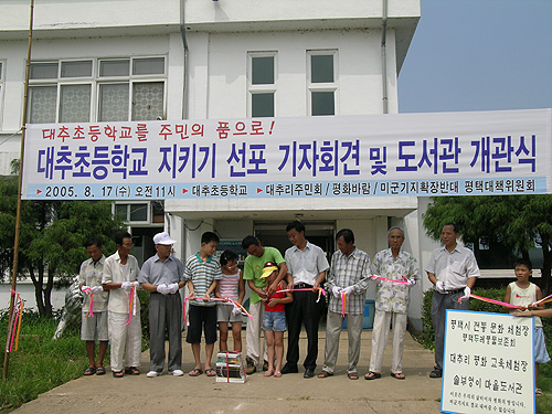 17ÀÏ ¿ÀÀü 11½Ã ÆòÅÃ ÆØ¼ºÀ¾ ´ëÃßÃʵîÇб³¿¡ '¼ÖºÎ¾ûÀÌ ¸¶À»µµ¼°ü'ÀÌ ¹®À» ¿¾ú´Ù. 2000³â Æó±³ ÈÄ ÀüÅë¹®ÈüÇèÀåÀ¸·Î, ÆòÈ ±³À°ÀÇ ÀåÀ¸·Î »ç¿ëµÇ´ø ´ëÃßÃʵîÇб³°¡ ¾ÆÀ̵éÀÌ ¸¶À½²¯ °øºÎÇÒ ¼ö ÀÖ´Â µµ¼°üÀ¸·Î ´Ù½Ã ÅÂ¾î³ °ÍÀÌ´Ù. 1969³â ÁֹεéÀÌ ¾ÆÀ̵éÀÇ ±³À°À» À§ÇØ ½ÒÀ» ÆÈ°í, ÀÚ°¥À» °í¸£°í, ¸ð·¡¸¦ ÆÛ³ª¸£´Â Èûµç ³ëµ¿À¸·Î ¸¶À» Àüü ÁÖ¹ÎÀÇ ¼Ò¸ÁÀ̾ú´ø Çб³¸¦ ¼³¸³Çß´ø °Íó·³, 2005³â ÆòÅà ¹Ì±º±âÁö È®Àå ÀúÁöÀÇ ¼Ò¸ÁÀ» ´ã¾Æ ÁÖ¹ÎÀÚÄ¡µµ¼°üÀ» ¼³¸³ÇÑ °ÍÀÌ´Ù.