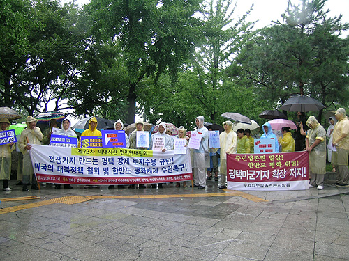 "ÆòÅà ¹Ì±º±âÁö È®ÀåÀ» À§ÇÑ °Á¦ÅäÁö¼öÅ» °èȹ ºÐ¼â!, ¹Ì±¹ÀÇ ´ëºÏÀû´ëÁ¤Ã¥ Æó±â ¹× Çѹݵµ ÆòÈüÁ¦ ¼ö¸³ Ã˱¸!" ¶ó´Â ÁÖÁ¦·Î ¿¸° À̹ø Áýȸ´Â Æòȹٶ÷, õÁÖ±³Á¤ÀDZ¸ÇöÀü±¹¿¬ÇÕ, ¹ÎÁÖȽÇõ°¡Á·¿îµ¿ÇùÀÇȸ, Á¶±¹ÅëÀϹü¹ÎÁ·¿¬ÇÕ³²Ãøº»ºÎ, ¹Ì±º±âÁöÈ®Àå¹Ý´ë ÆòÅôëÃ¥À§/ÆØ¼º´ëÃ¥À§, ÆòÈ¿ÍÅëÀÏÀ»¿©´Â»ç¶÷µé °øµ¿ ÁÖÃÖ·Î 50¿©¸íÀÌ Âü°¡ÇÏ¿´´Ù.