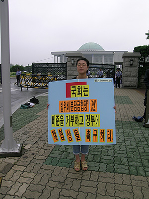 6¿ù27ÀÏ ÆòÅë»ç¿¡¼ ±¹È¸Á¤¹® ¾Õ¿¡¼ ¿ÀÀü 9½Ã30ºÐºÎÅÍ 11½Ã 30ºÐ±îÁö ±¹È¸ ÅëÀϿܱ³Åë»óÀ§¿øÈ¸ÀÇ ¹æÀ§ºñºÐ´ã±ÝÇùÁ¤¾È ½ÉÀÇ¿¡ ¸ÂÃç 1ÀÎ ½ÃÀ§¸¦ Àü°³ÇÏ¿´½À´Ï´Ù.